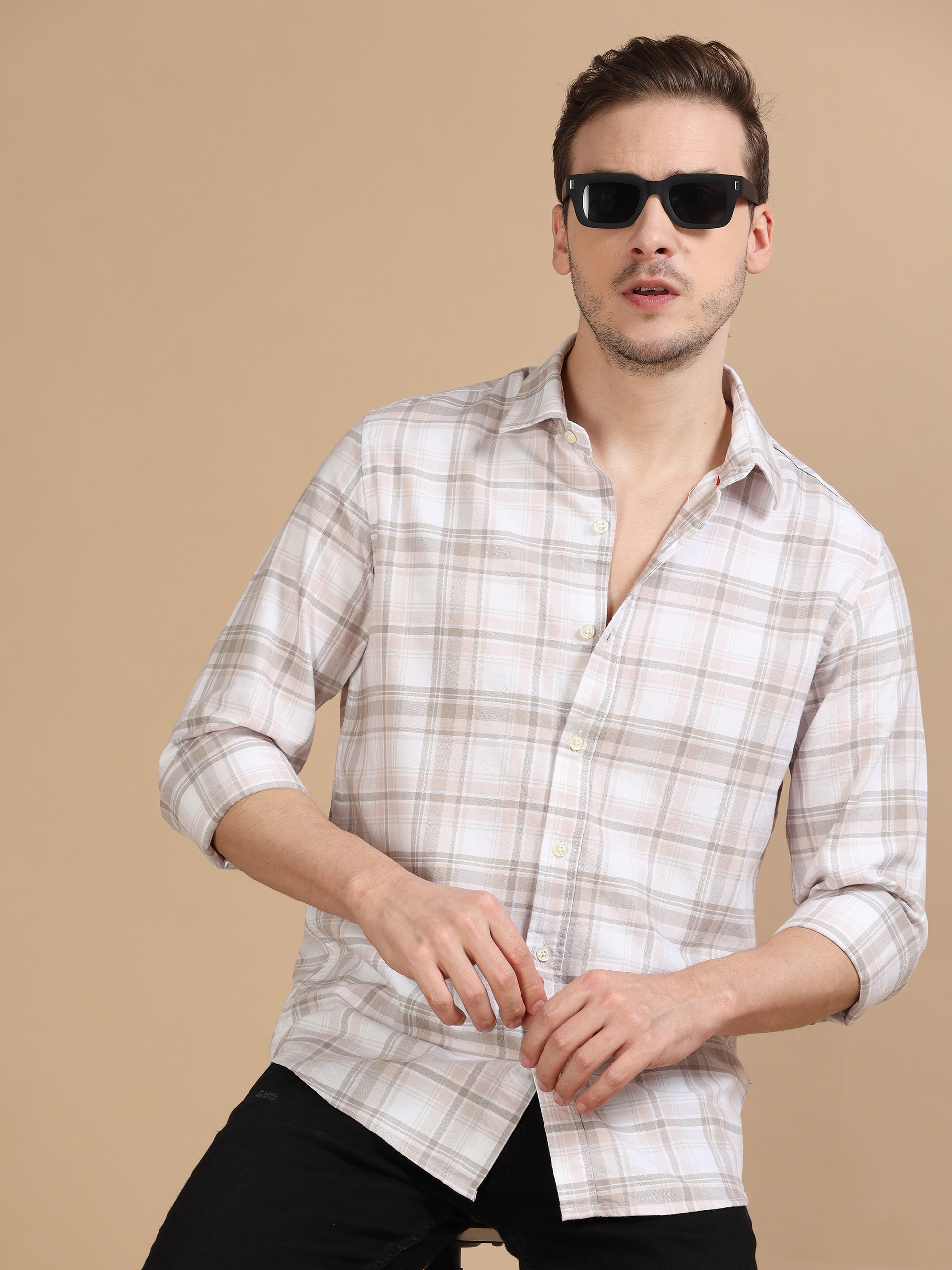 Marksmith Men's Oxford Checkered Slim fit Shirt, White:Beige:Grey,