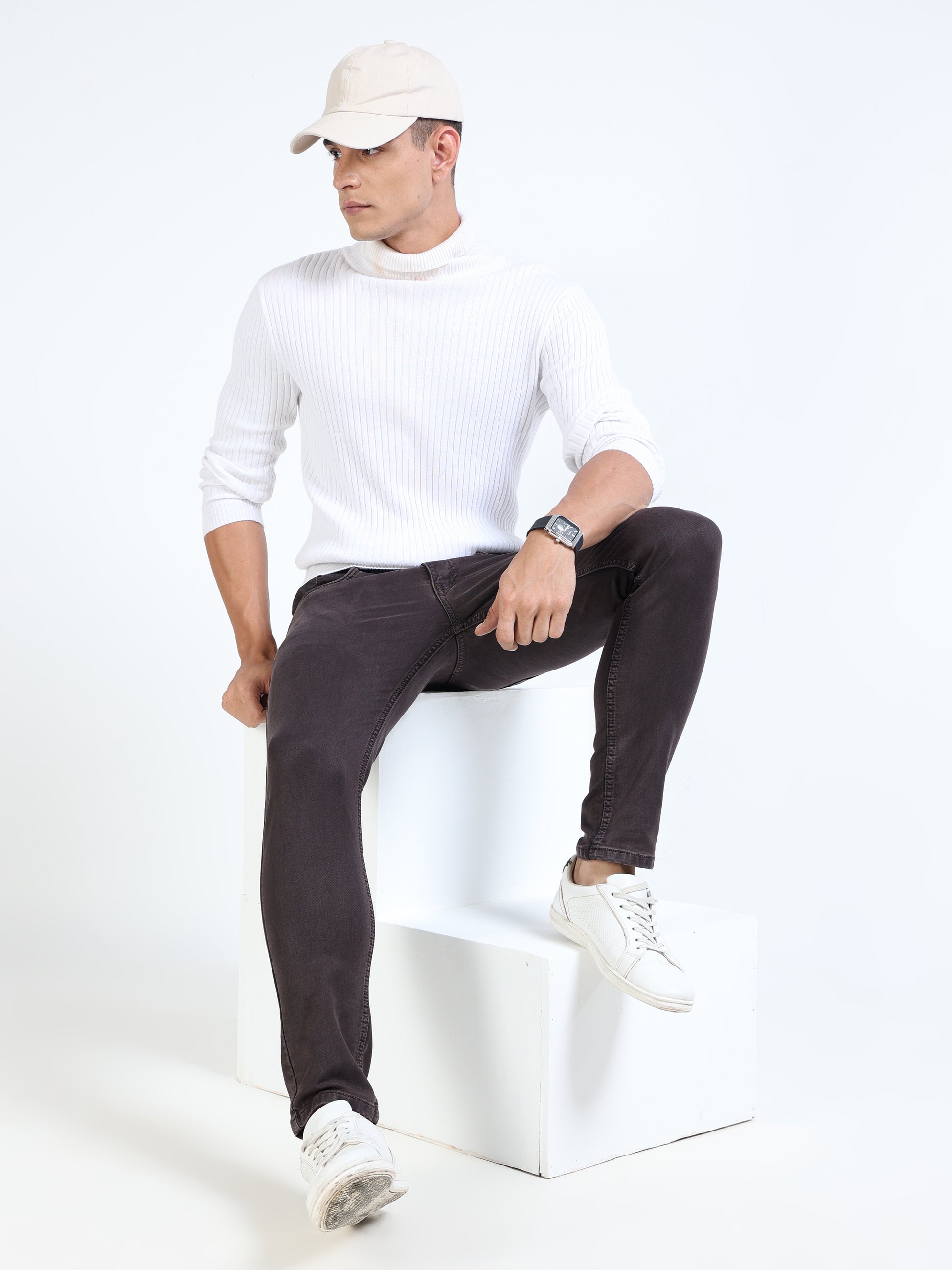 MARKSMITH Men's Slim Fit Stretchable Denim jeans Chocolate brownie
