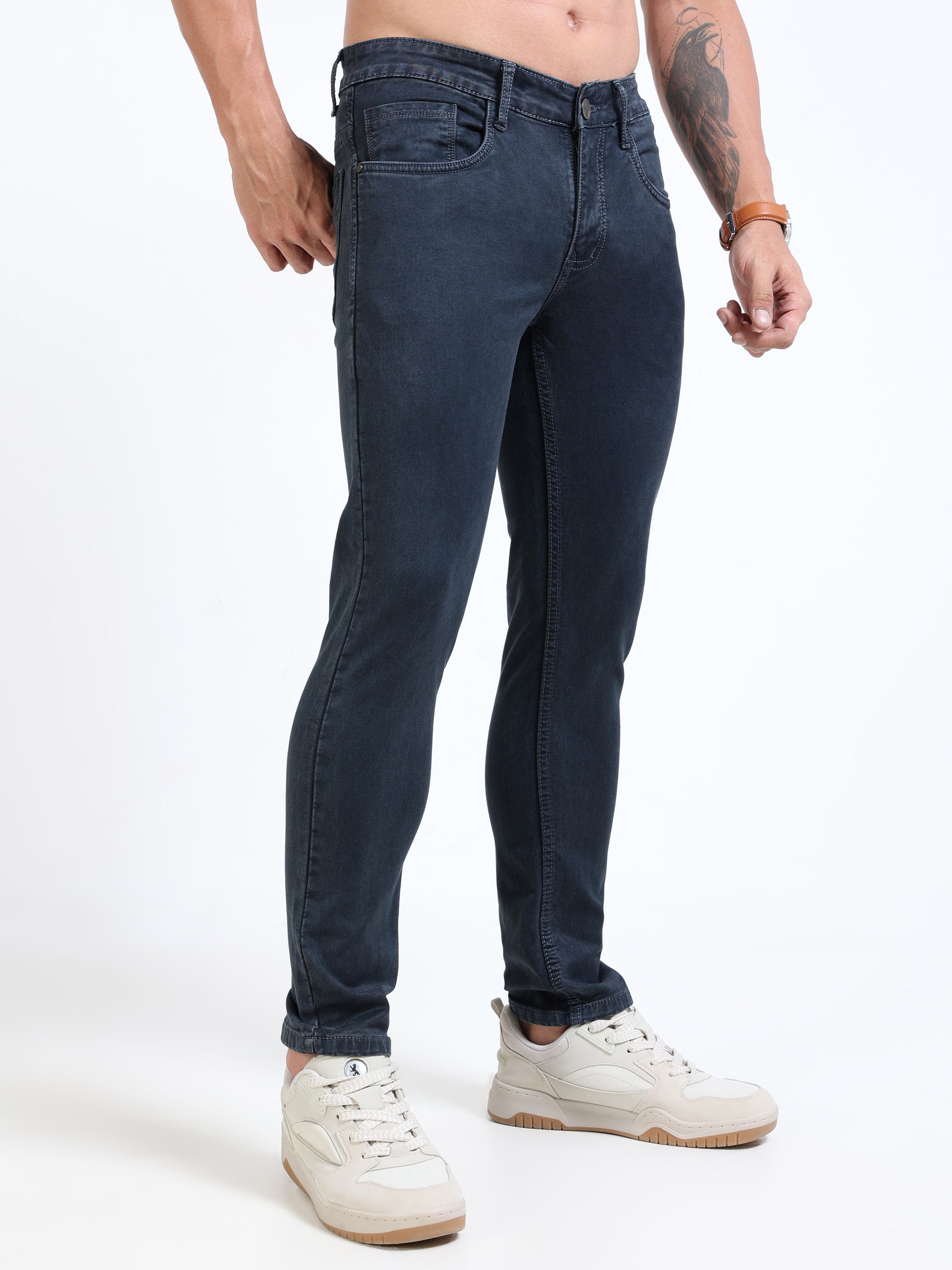 Crafted for comfort and style, MARKSMITH Men's Slim Fit Stretchable Denim Jeans feature a mid-rise design and ankle-fit cut that offers a modern silhouette. The stretchable fabric ensures flexible movement and a tailored fit throughout the day, making them ideal for both casual and semi-formal occasions. Durable and versatile, these jeans combine practical wearability with contemporary aesthetics.