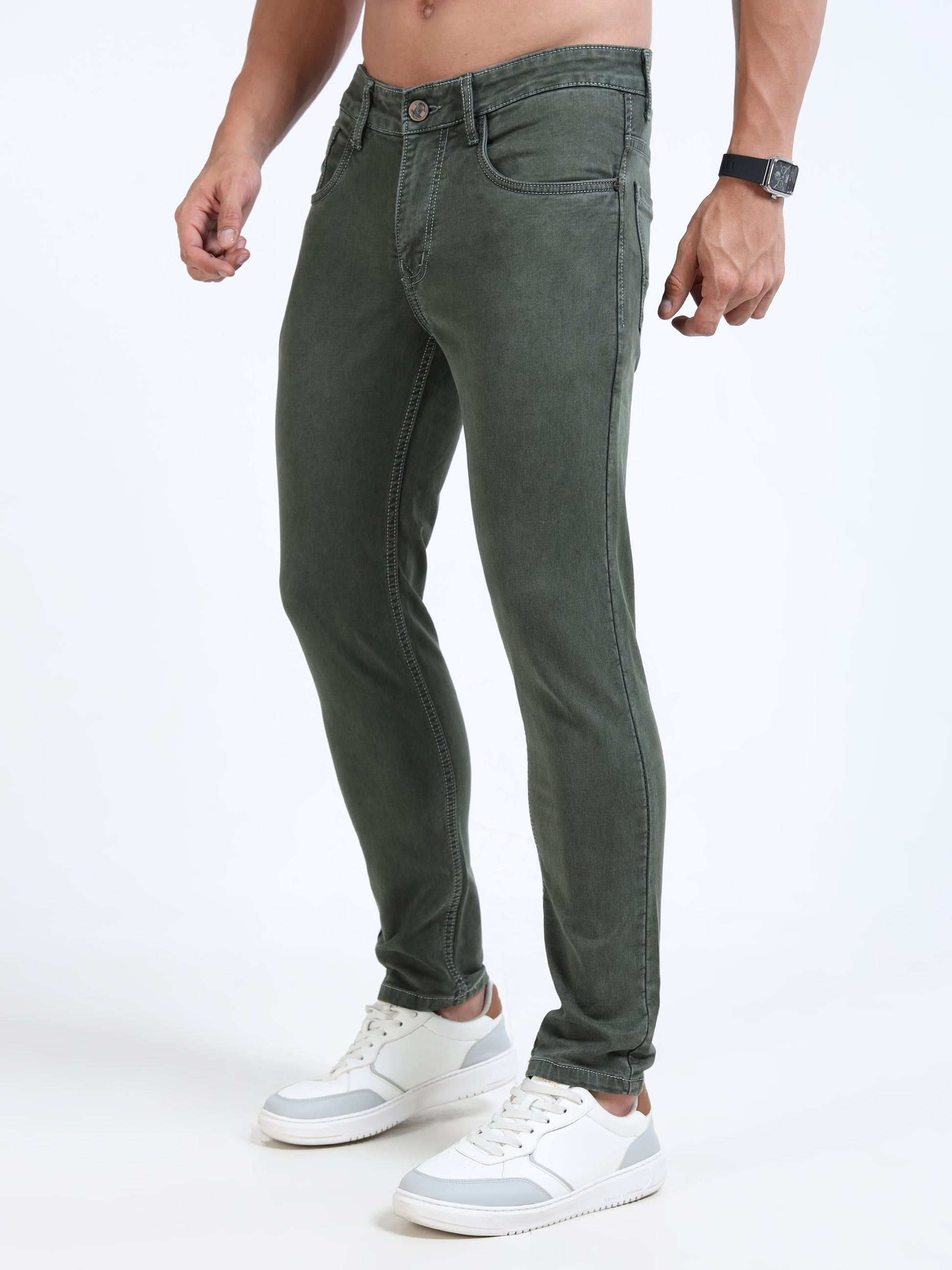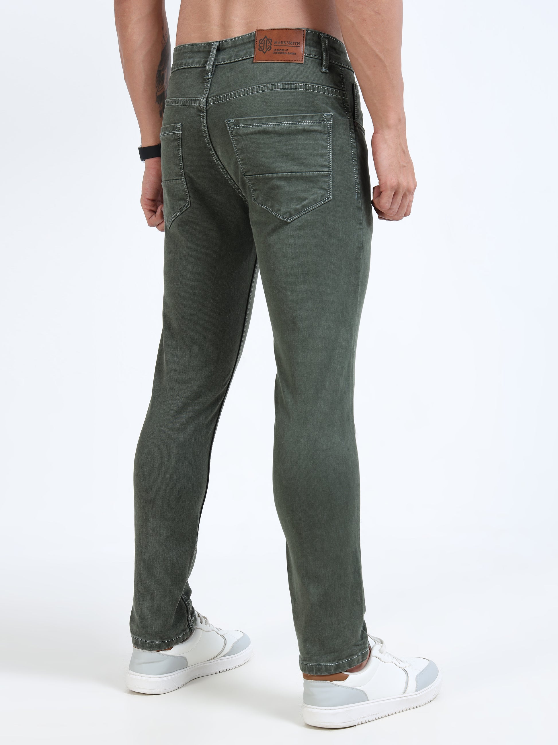 MARKSMITH Men's Slim Fit Stretchable Denim jeans Charcoal Green